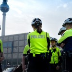 Dazu war die Polizei Berlin auch selbst mit ihrer Fahrradstaffel im Einsatz. Wie hier z. B. am Dienstag nahe des Alexanderplatzes.